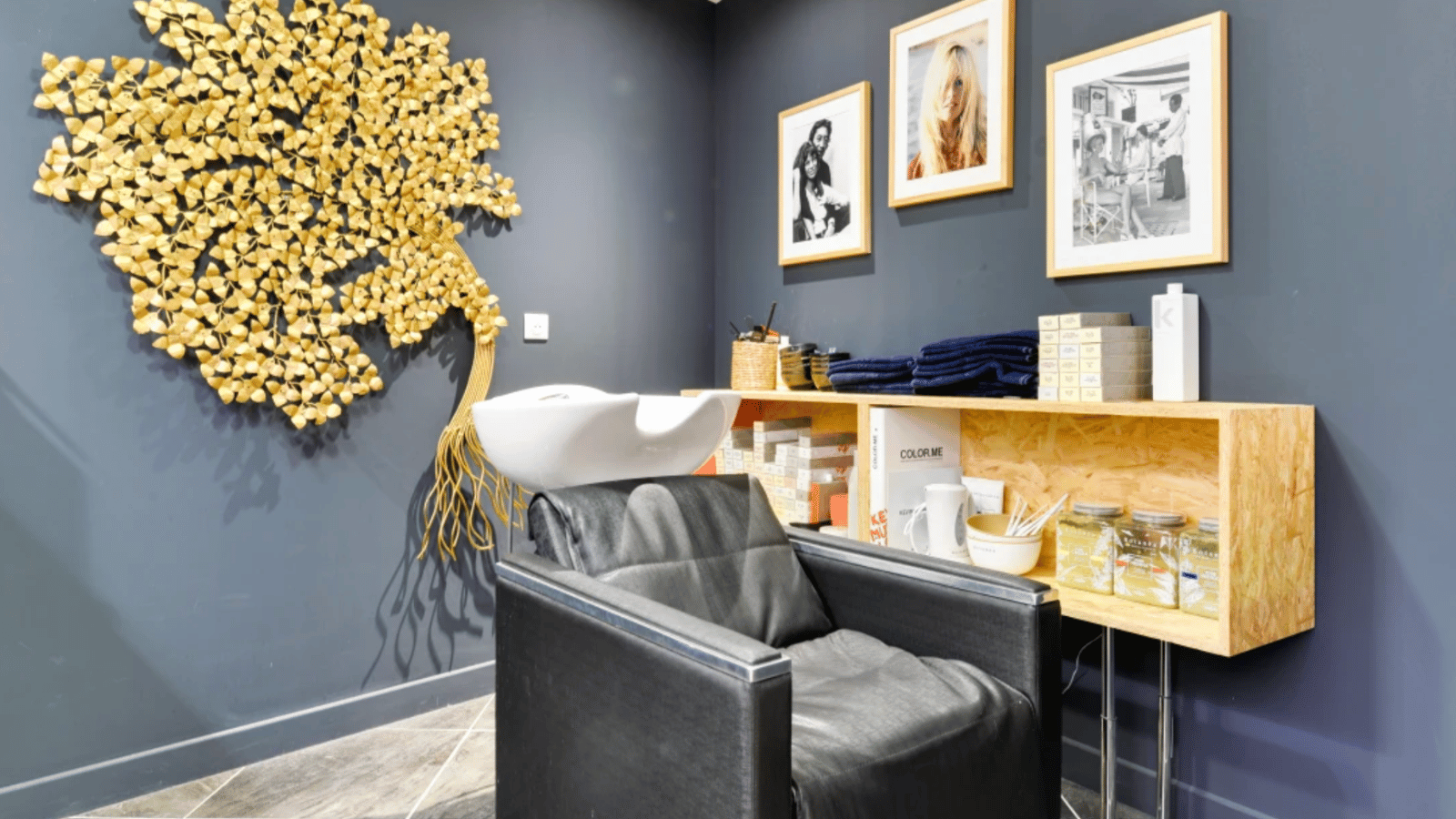 L’espace shampooing est équipé d’un bac Maletti haut de gamme, électrique, massant et avec repose-jambes relevable, offrant un véritable moment de détente à la clientèle.