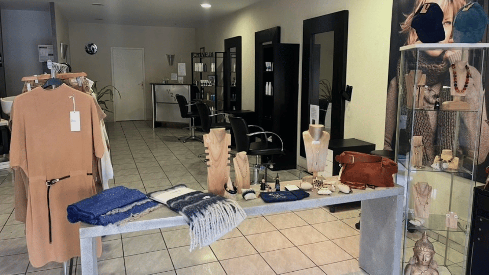 Le salon dispose également d’un espace attente et d’un coin vente.